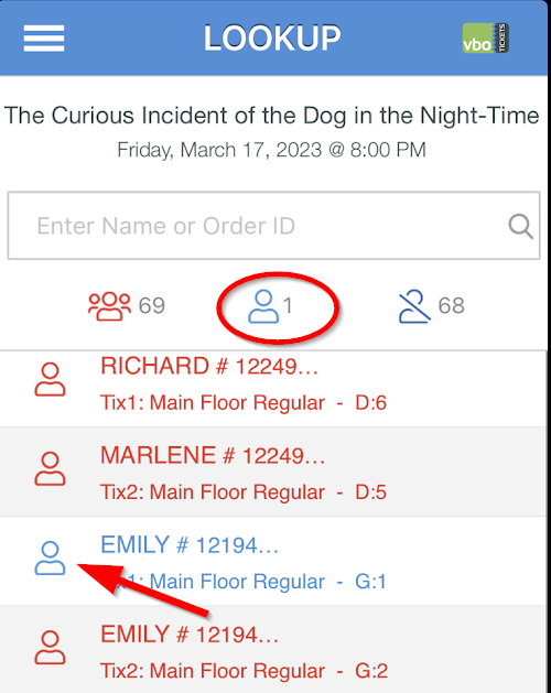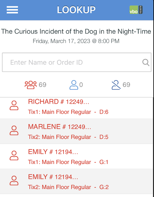 - Make sure you have the correct show selected, otherwise you won’t see the correct list of patrons