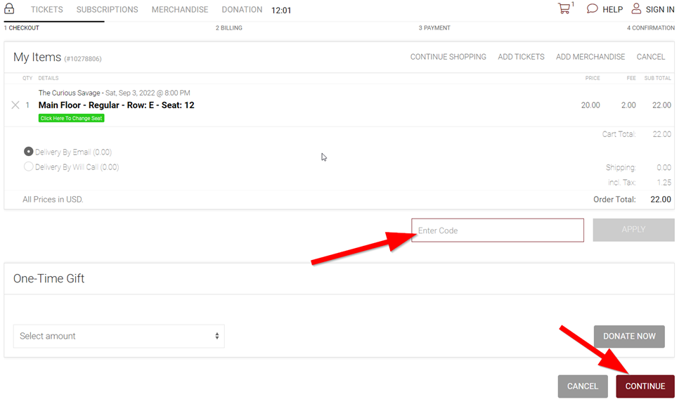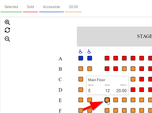 - Choose any available seat(s). Note that even though a price is shown, the price will be reduced at checkout.
