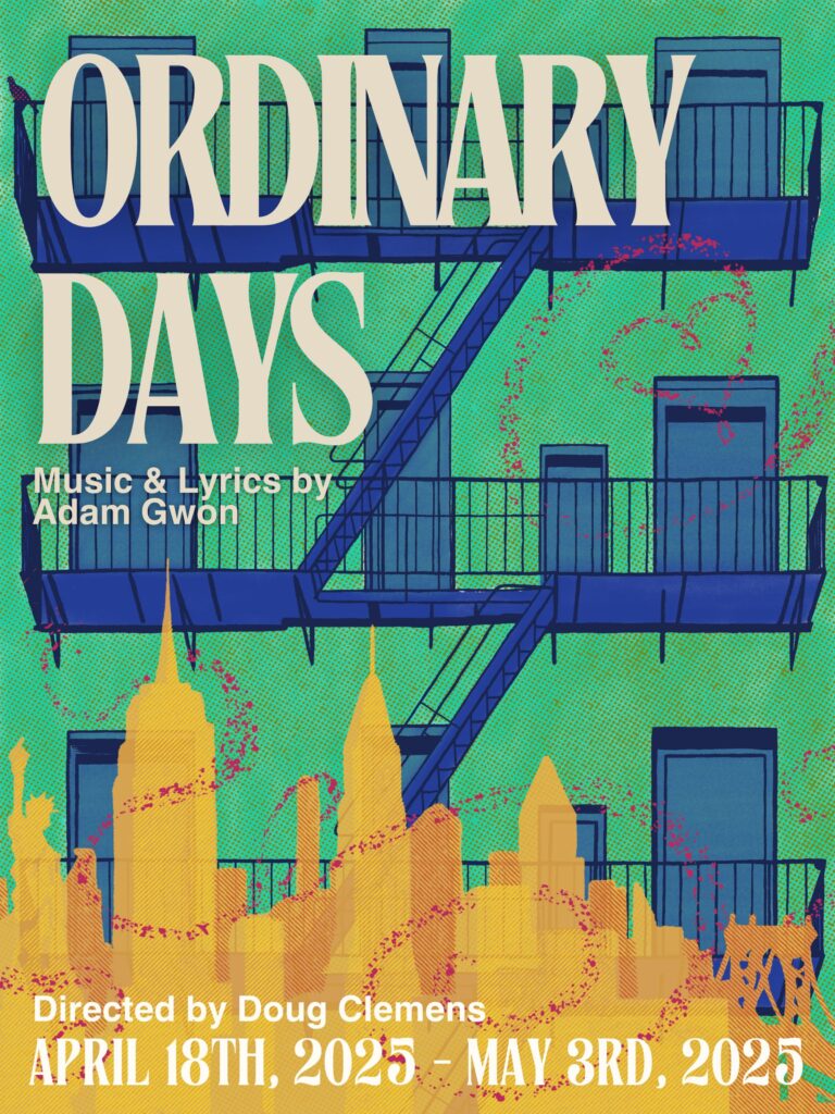 Ordinary Days tells the story of four young New Yorkers whose lives intersect as they search for fulfillment, happiness, love and cabs. Through a score of vibrant and memorable songs, their experiences ring startlingly true to life. Ordinary Days is an original musical for anyone who’s ever struggled to appreciate the simple things in a complex place. With equal doses of humor and poignancy, it celebrates how 8.3 million individual stories combine in unexpected ways to make New York City such a unique and extraordinary home.